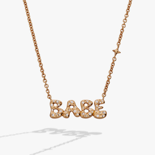 Celebrate in style with this bold statement necklace featuring chunky bubble letters, glittering crystal embellishments, and our iconic etched star...