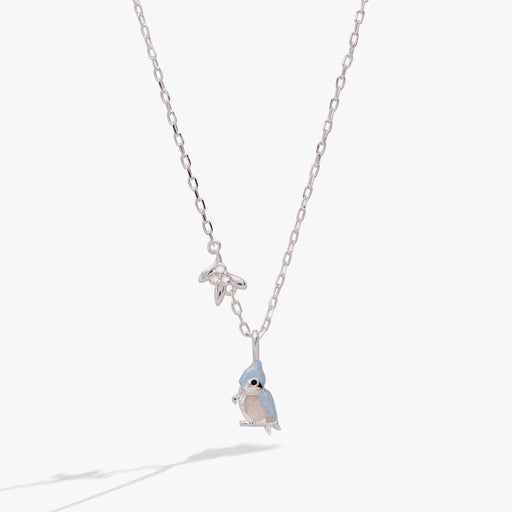 Celebrate the season with this charming silver-plated necklace featuring a three-dimensional tufted titmouse bird adorned with transparent blue-gre...