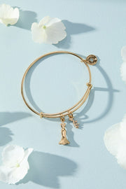 Celebrate the promise of a lifetime with the Bridal Gown Duo Charm Bangle. This elegant expandable wire bracelet features a delicate sculptural wedding dress charm alongside a sparkling “Bride” charm accented with a crystal. Designed to capture the joy and excitement of your engagement, it’s the perfect piece to wear as you cherish every special moment leading up to your big day.