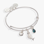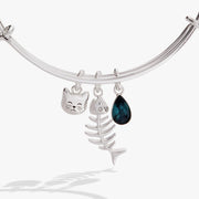 Cats are the purr-fect companions. This Fish Bone Cat Bangle bracelet has three charms on an expandable wire bangle: a crystal-accented cat face, a fish bone, and a subtly blue smoked sapphire-colored crystal. Wear it to keep your favorite pets close, or gift it to your favorite cat lover.
