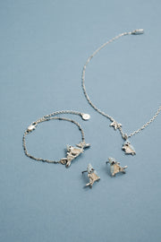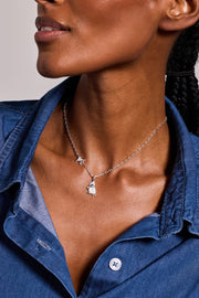 Celebrate the season with this charming silver-plated necklace featuring a three-dimensional tufted titmouse bird adorned with transparent blue-grey enamel, pearlized white detailing, and a tiny decorative scarf. Delicate mistletoe sprigs with sparkling crystal berries accent the chain, creating a whimsical winter scene. Known for its cheerful song and winter presence, the tufted titmouse symbolizes joy, happiness, and good fortune—while mistletoe represents love and togetherness. Perfect for bird lovers and holiday enthusiasts alike, this playful piece captures the magic of the season without feeling too festive to wear year-round.