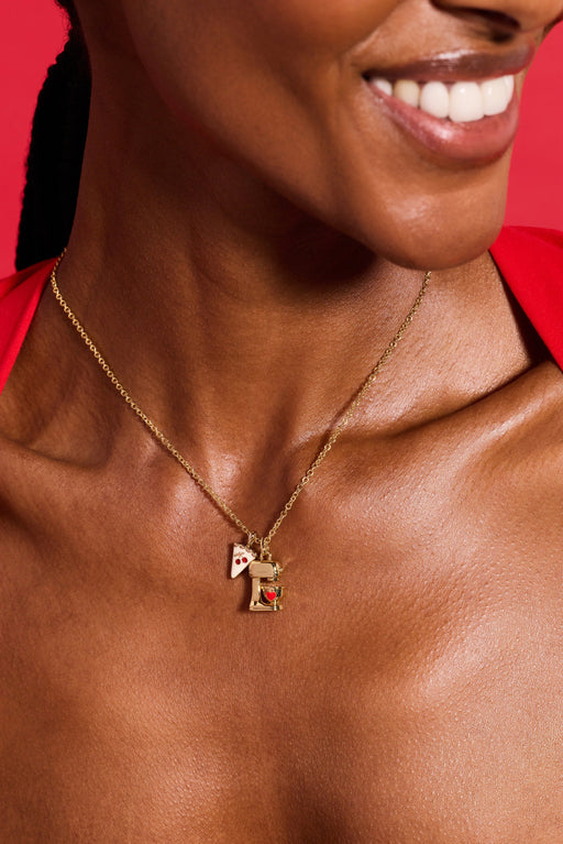 View full detailsCelebrate the sweetness of life with this charming gold-plated pendant duo. Featuring a whimsical mixer adorned with a red enameled heart and a del...