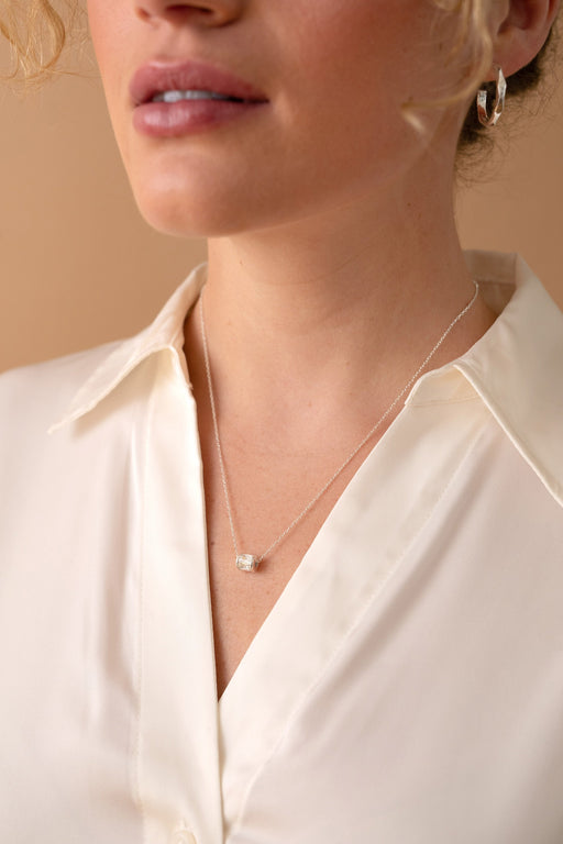 View full detailsCelebrate April birthdays — or just add a touch of sparkle to your look — with this clear crystal pendant designed to shine. The sliding barrel-sha...