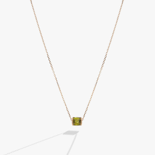 View full detailsCelebrate August birthdays — or invite a little prosperity into your day — with this vivid peridot-toned pendant. The sliding barrel-shaped charm i...