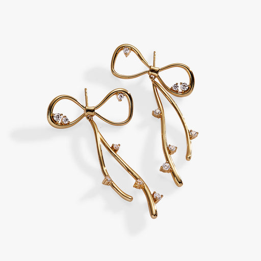 View full detailsAdd an edgy, feminine touch with these coquette bow earrings. The asymmetrical bows feature clear crystal geometric accents. Dress them up or down ...