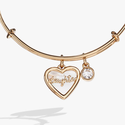 View full detailsCelebrate the special bond you share with an expandable charm bangle designed to honor your daughter. This beautiful piece features a delicate "Dau...