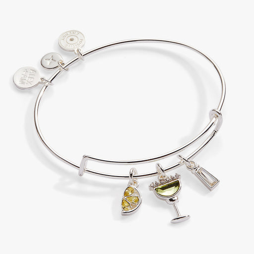View full detailsShaken, stirred, or stacked with style. This silver-tone charm bangle brings happy hour to your wrist with three fun charms: a green crystal lime w...