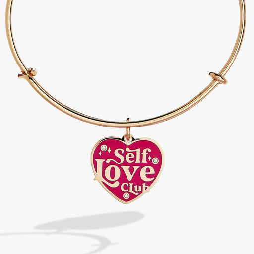 Show yourself the love you give to others, you’re worth it! This classic charm bangle features a pink epoxy heart charm printed with “ Self Love Cl...