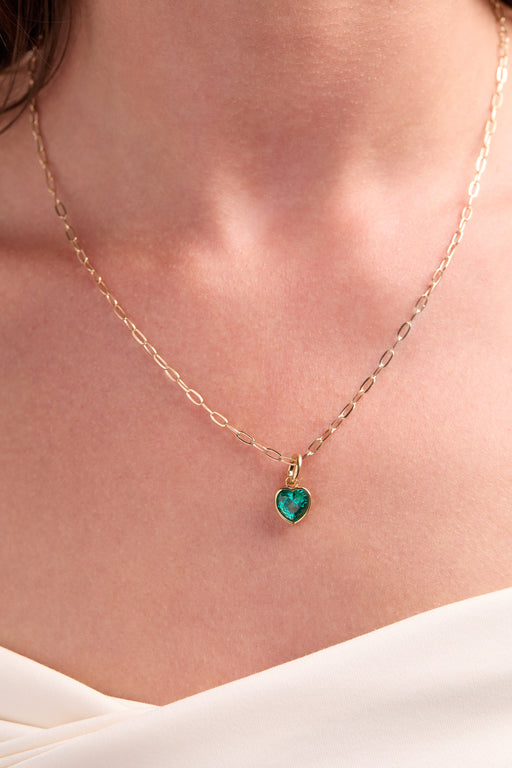 View full detailsThis playful charm features a sparkling emerald-colored faceted heart CZ stone set in a sleek bezel with a star-shaped logo cutout on the back. "Ho...