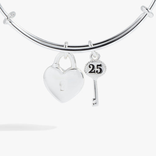 View full detailsA silver anniversary deserves a special keepsake. This 25th anniversary bangle bracelet marks this major milestone with a lock and key design: a he...