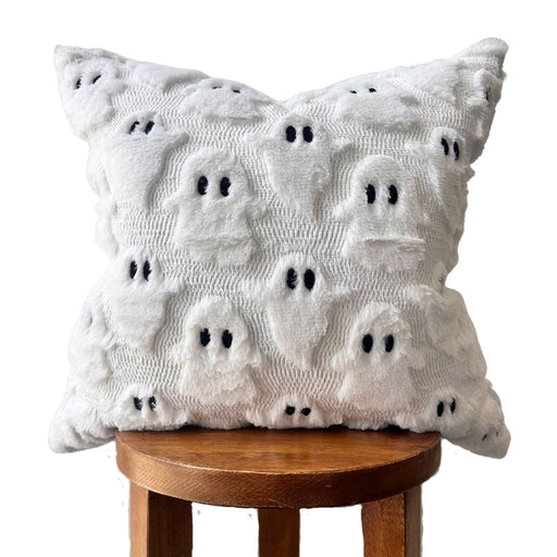 View full detailsAdd a playful and spooky touch to your home this Halloween with our 18" White Ghost Pillow Cover! Handmade from luxuriously soft faux fur, this fes...