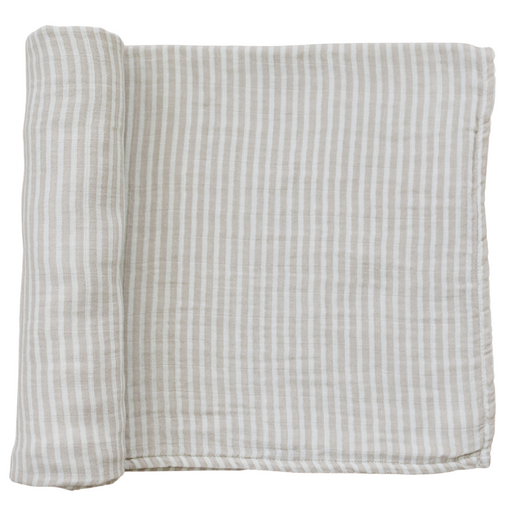 View full detailsWrap your little one in comfort and style with the Taupe Stripe Muslin Swaddle Blanket from Mebie Baby. Made from soft and breathable muslin fabric...