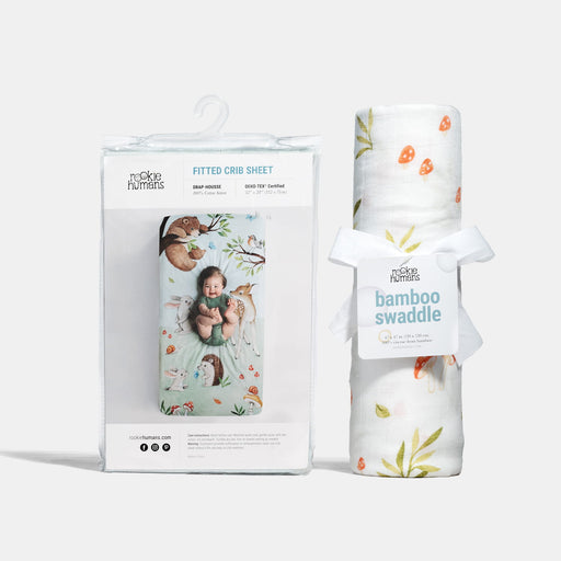 View full detailsBring a touch of whimsy to your baby's sleep time with the Rookie Humans Woodland Dreams Crib Sheet and Swaddle Bundle. A precious newborn gift, th...