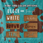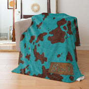 Teal and Brown Faux Cow Hide - Custom Faux Leather Name - Personalized Blanket