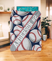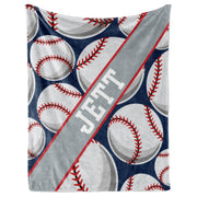 Baseballs Repeat with Name Stripe - Personalized Blanket