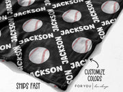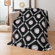 Repeating Name Angled with Baseballs - Personalized Blanket