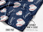 Repeating Name with Baseball Hearts - Personalized Blanket