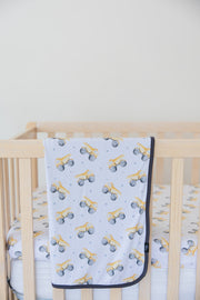 Each blanket features a playful print on one side and a coordinating solid color on the other, offering two stylish looks in one. Measuring 50" x 50", they’re generously sized for snuggling, napping, and playtime, making them a staple for growing children.