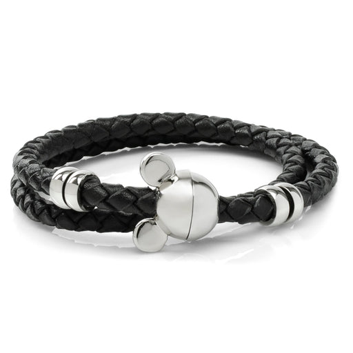 Made with braided black leather with silver metal beads, our Mickey Silhouette Black Double Wrapped Leather Bracelet is a sleek addition to any cuf...