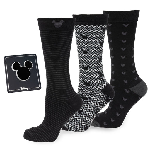Disney Mickey Mouse Silhouette Motif Black Sock and Mickey Blue Lapel Pin Gift Set