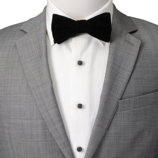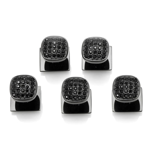 Made of black plated stainless steel with black preciosa crystals in a pave setting, these tuxedo studs are a modern and masculine take on the basi...