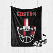 Football Helmet Front View with Name and Team Name - Custom Colors - Personalized Blanket