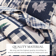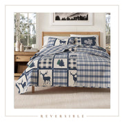 Add a forest scene to any bedroom with this rustic lodge quilt set. Its charming plaid pattern features deer, bear, and tree prints.