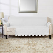 A furniture protector is the best way to refresh your living room furniture without any renovations. This cover features a solid color assortment with a sophisticated circular medallion stitching detail. Easily place this protector over your furniture and secure it with the elastic straps - this cover will protect your furniture from everyday life with kids and pets. Update your living room decor and protect your furniture all with one cover.