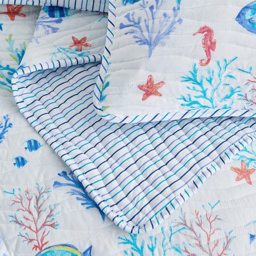 The handcrafted coral designs on this quilt bedding set will complement your coastal decor seamlessly. The reversible side features small, blue cor...
