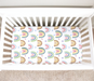 Our crib sheets fit a standard size crib and measure around 52 x 28 x 7 inches.