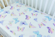 Our crib sheets fit a standard size crib and measure around 52 x 28 x 9 inches.