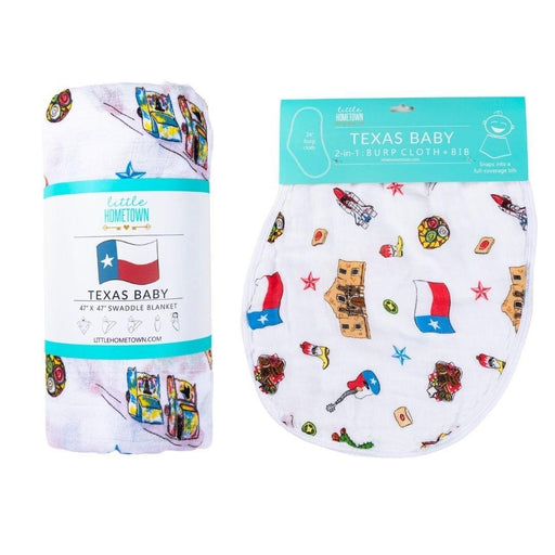 View full detailsSave 10% when you order our Texas Baby swaddle and Burp Cloth/Bib together as a gift set! Swaddle: 47" x 47" Extra Soft Muslin Bamboo & Organi...