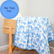 - ELEGANT BLUE PEONY DESIGN - Adorned with graceful blue peonies, this blanket brings a serene and sophisticated touch to your baby’s nursery. Its soft floral pattern creates a peaceful, stylish ambiance, making it the perfect gift for baby showers or birthdays, adding beauty and calm to any space