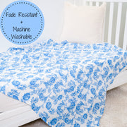 - ELEGANT BLUE PEONY DESIGN - Adorned with beautiful blue peonies, this blanket adds a touch of sophistication and calm to your baby’s nursery. Its delicate floral pattern creates a serene and stylish atmosphere, making it a perfect gift for baby showers or birthdays
