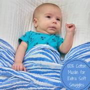 Waving At You Baby Muslin Blue Swaddle Blanket