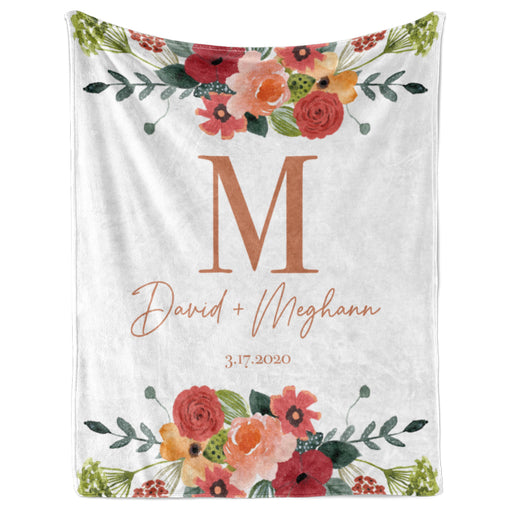 Flower Pattern with Monogram and Couples Name and Date - Personalized Blanket