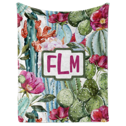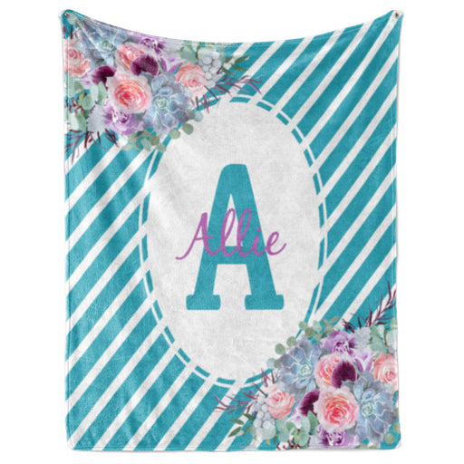 Succulent Flowers with Oval Frame Monogram and Name - Personalized Blanket