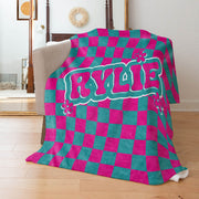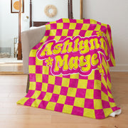 Checkered Groovy Retro Custom Name - Personalized Blanket