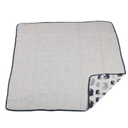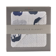 Blue Elephant and Spotted Wave Cotton Muslin Newcastle Blanket