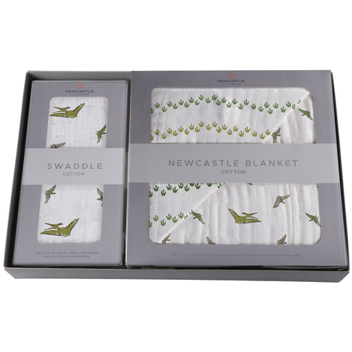 View full detailsGift box set with our popular comfy and cozy four layer 100% natural cotton Newcastle Blanket and one soft, breathable, pre-washed muslin swaddle m...