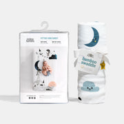 Bring a touch of whimsy to your baby's sleep time with the Rookie Humans Moon's Birthday Crib Sheet and Swaddle Bundle. A precious newborn gift, this moon and stars themed bundle includes 1 standard size fitted crib sheet and a coordinating bamboo swaddle blanket.