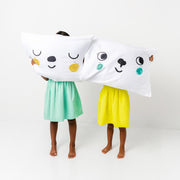 The set includes 2 pillowcases, with smiling faces and vibrant pops of color on the cheeks. The pillowcases have envelope closure to keep the pillow in place throughout all the tossing, turning and pillow-fighting.