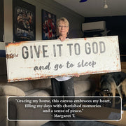 You may personalize this sign by adding your favorite verse from the Bible or a quick prayer to serve as a daily reminder to yourself that God is in charge and you can rest. This sign is a great way to add some personality to your home décor and is an excellent gift for someone who struggles with anxiety or insomnia.