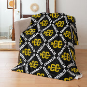 Repeating Name Angled with Cross Country CC Icon - Personalized Blanket