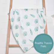 • BEAUTIFUL PEACOCK BABY BLANKET-This peacock print baby blanket is perfect for decorating the nursery or using as a stroller cover for your baby. Parents will love receiving this charming blanket as a baby shower gift or welcome present.