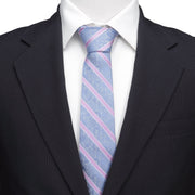 Marvel Comics Blue and Pink Stripe Silk Men's Tie